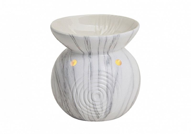 Diese marmorierte Duftlampe ist ca. 11 cm hoch und ca. 10 cm breit.